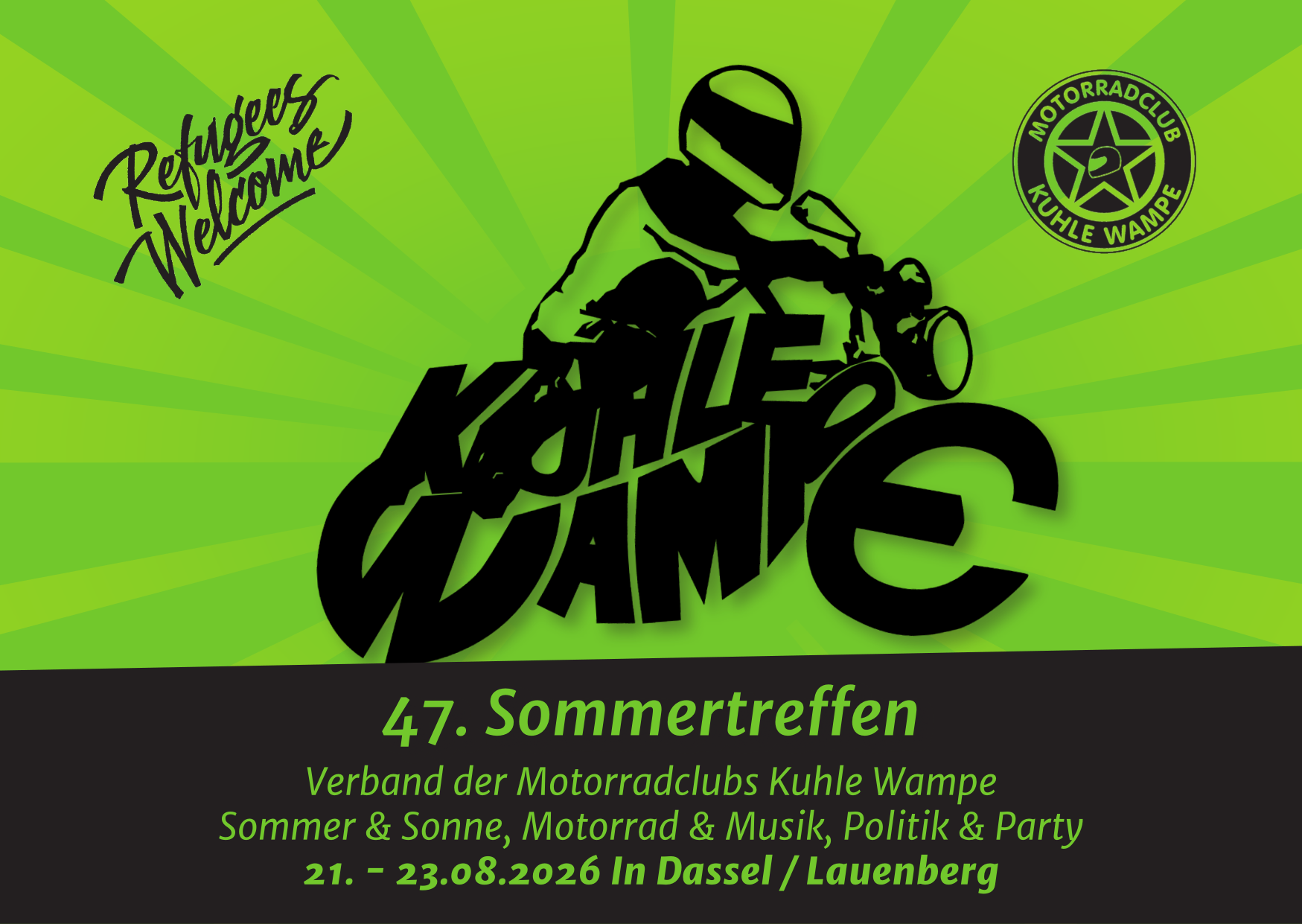 Wir freuen uns, euch auch in 2026 zum Sommertreffen des Verbandes der Motorradclubs Kuhle Wampe einladen zu dürfen.