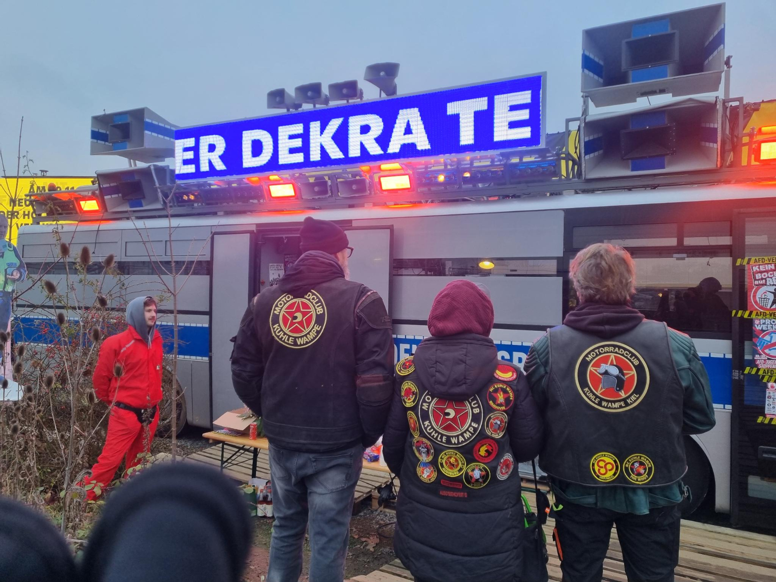 Mit 26 Mitgliedern und Sympies hat der Kuhlen Wampe MC an den Aktionen gegen die AFD-Jugend teilgenommen. Aus ganz Deutschland, teils schon Freitag angereist, haben wir das Wochenende die Aktionen unterstützt. LKWs gefahren und geladen, Camps bewacht, mit Motorrädern Sanis, Demoteilnehmende und Material transportiert. Es war uns eine Ehre dabei gewesen zu sein. Solidarische Grüße gehen u. a. an #widersetzen #adenauersrp+ #afdnee #attac #omasgegenrechts #dgb