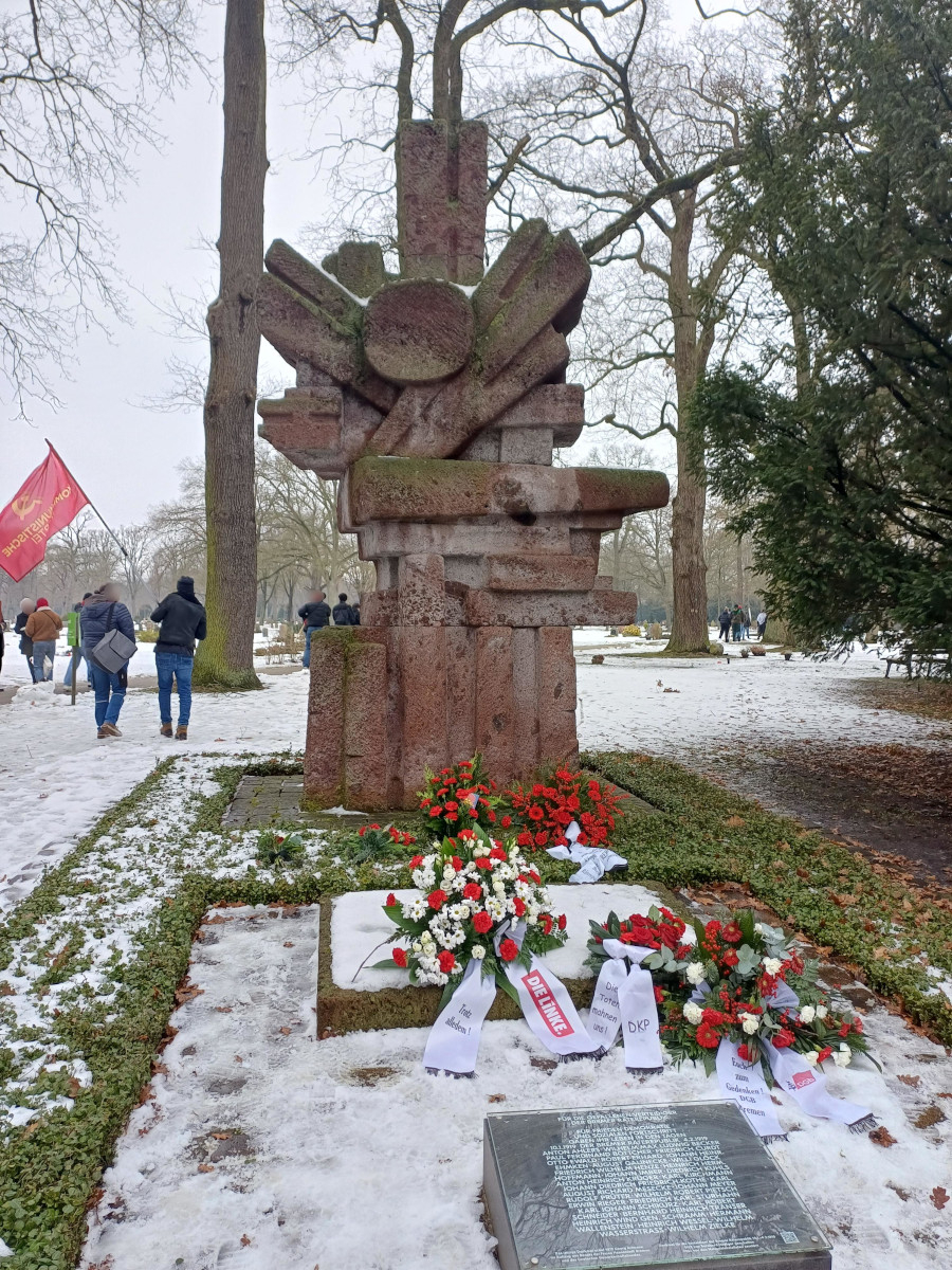 Einmal im Jahr wird auf dem Waller Friedhof, am Hauptmahnmal für die Gefallenen der Bremer Räterepublik, an das damalige Geschehen erinnert – dieses Mal unter Beteiligung des MC Kuhle Wampe.
